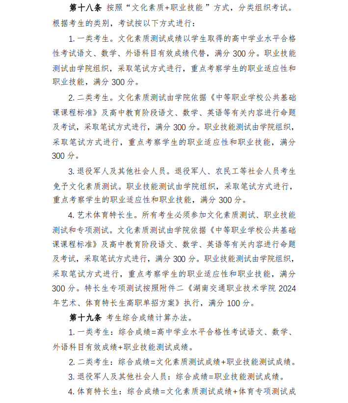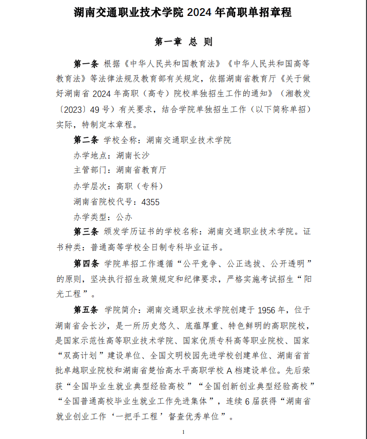 更多详情点击:湖南交通职业技术学院2024高职单招招生章程
